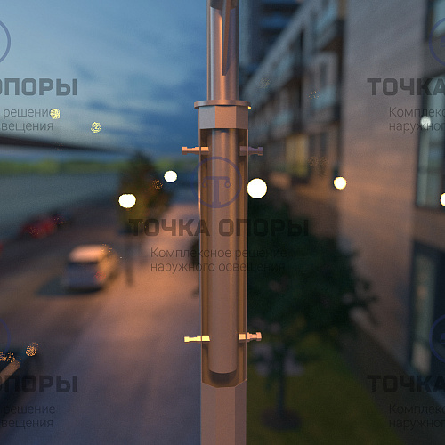 Граненая коническая несиловая опора ОГК предполагает установку кронштейна, который крепится к верхней части конструкции при помощи специальных шпилек, выполненных из стали. Кронштейн для таких опор может иметь от 1 до 4 рожков, то есть предполагать установку разного количества светильников.